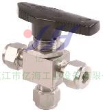特点1. 三通球阀用于流路的切换, 通过三通球阀可以实现一个入口有选择的切换至两个出口2. 优秀的顶部填料密封,保证密封可靠。顶部压盖设计,使阀门可在线调整3. 三通球阀的常规耐压可达17.2MPa4. 可面板安装三通球阀结构尺寸 端接 产品编号 通径 (...